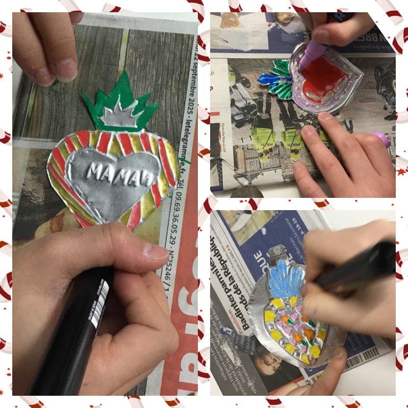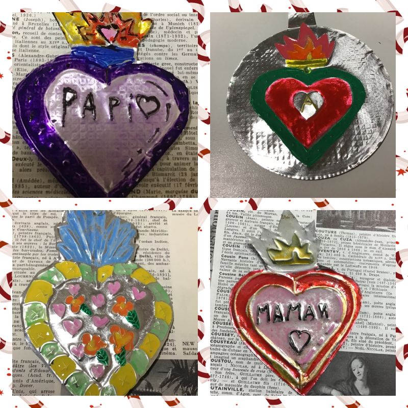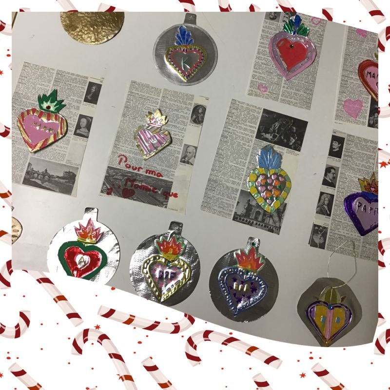 Cette année, les élèves pouvaient ainsi repartir avec plantes dans des tasses de café, des boucles d'oreilles, des badges à messages, des photophores, des autocolants faits maison, des étoiles en papier kraft, des "milagros" mexicaines ou encore des cartes de voeux.