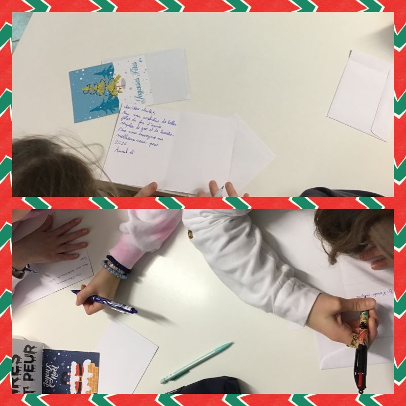 La dernière séance était consacrée à l'écriture de "cartes de voeux solidaires" qui seront envoyées à la maison de retraite et aux Resto du coeur.