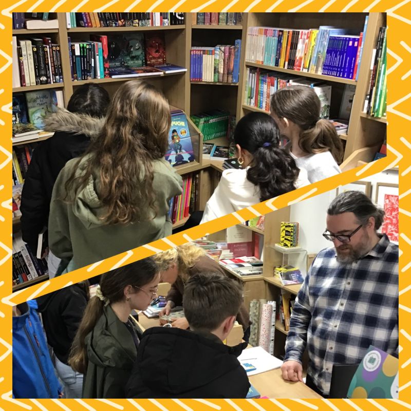 Le lundi 26 janvier, ils ont passé tout l'après-midi à la librairie où Marion et Maël Bulot les ont chaleureusement accueillis en leur explicant leur parcours professionnels, le système de rangement des livres, les coulisses du métier (nombre de livres vendus, poids des cartons portés...) ainsi que les similitudes et différences entre une librairie indépendante et une franchise.