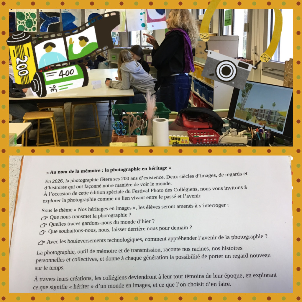 A l'occasion de cet anniversaire, les élèves de l'Atelier (option Arts Plastiques) ont été sélectionnés par le Conseil Départemental pour le projet "Festival Photo des Collégiens" et sont invités à explorer la photographie comme lien vivant entre le passé et l'avenir.