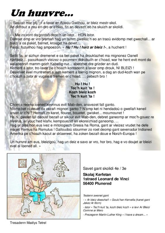 Vous trouverez ci-dessous la nouvelle des élèves en breton et en français.