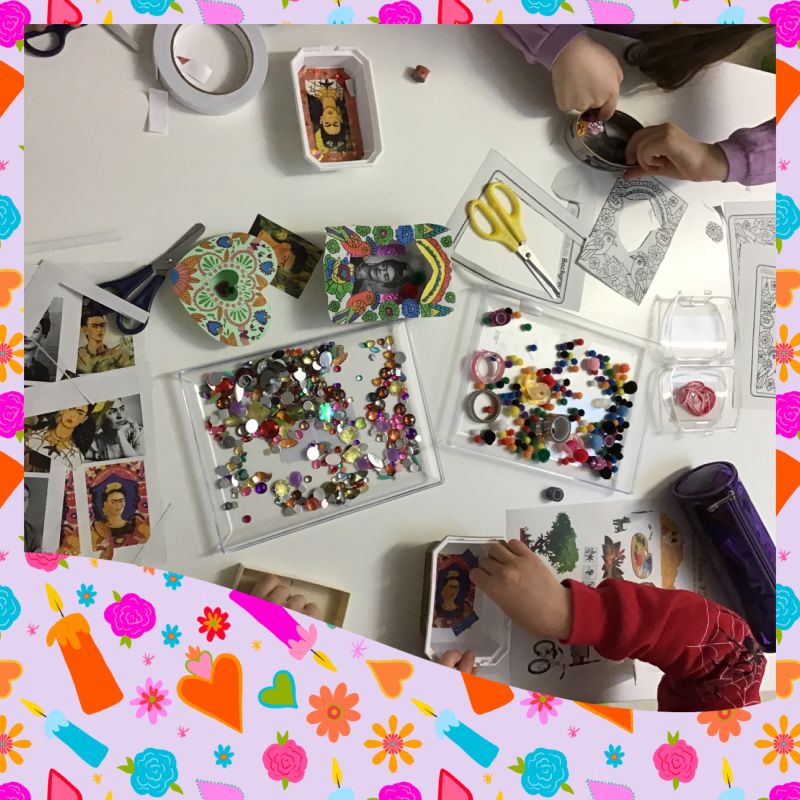 Au CDI, les élèves le souhaitant pouvaient participer à un atelier bricolage autour de Frida Kahlo et de la tradition mexicaine des Nichos. Des lectures dans toutes les langues étudiées au collège étaient également proposées à toutes et tous.